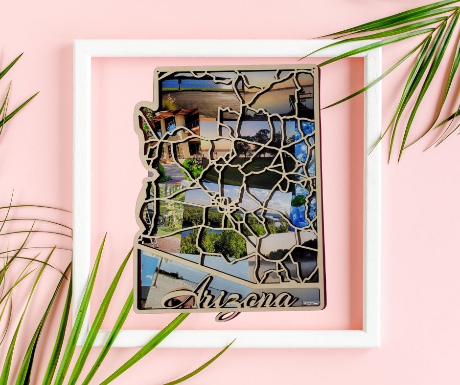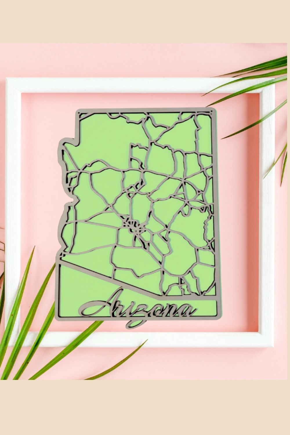 Celebrate your connection to Arizona with this unique state road map. Crafted from 1/4 inch wood, it effortlessly brings a touch of style to your home. Measuring approximately 13.5" x 10", each map features the main roads of Arizona, making it a perfect decorative piece.