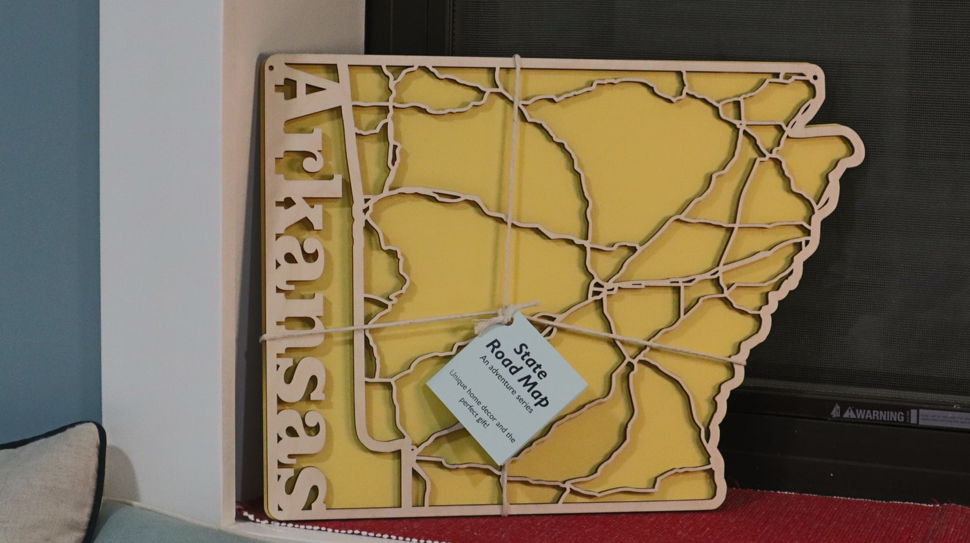 Show your home state some love with a unique Arkansas State Road Map. Crafted from 1/4 inch wood, this map beautifully highlights the main roads, adding a touch of style to your decor.