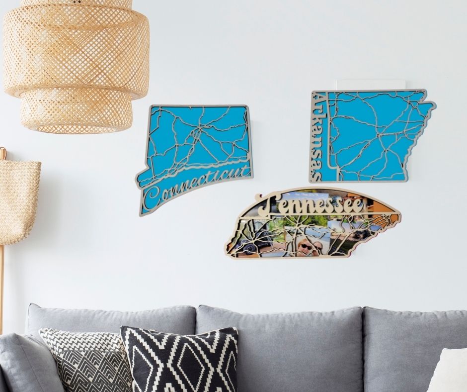 Perfect for those who have lived in multiple states, these maps allow you to display a piece of each home you’ve cherished. Each map comes with a backerboard in various colour options, providing a versatile backdrop.