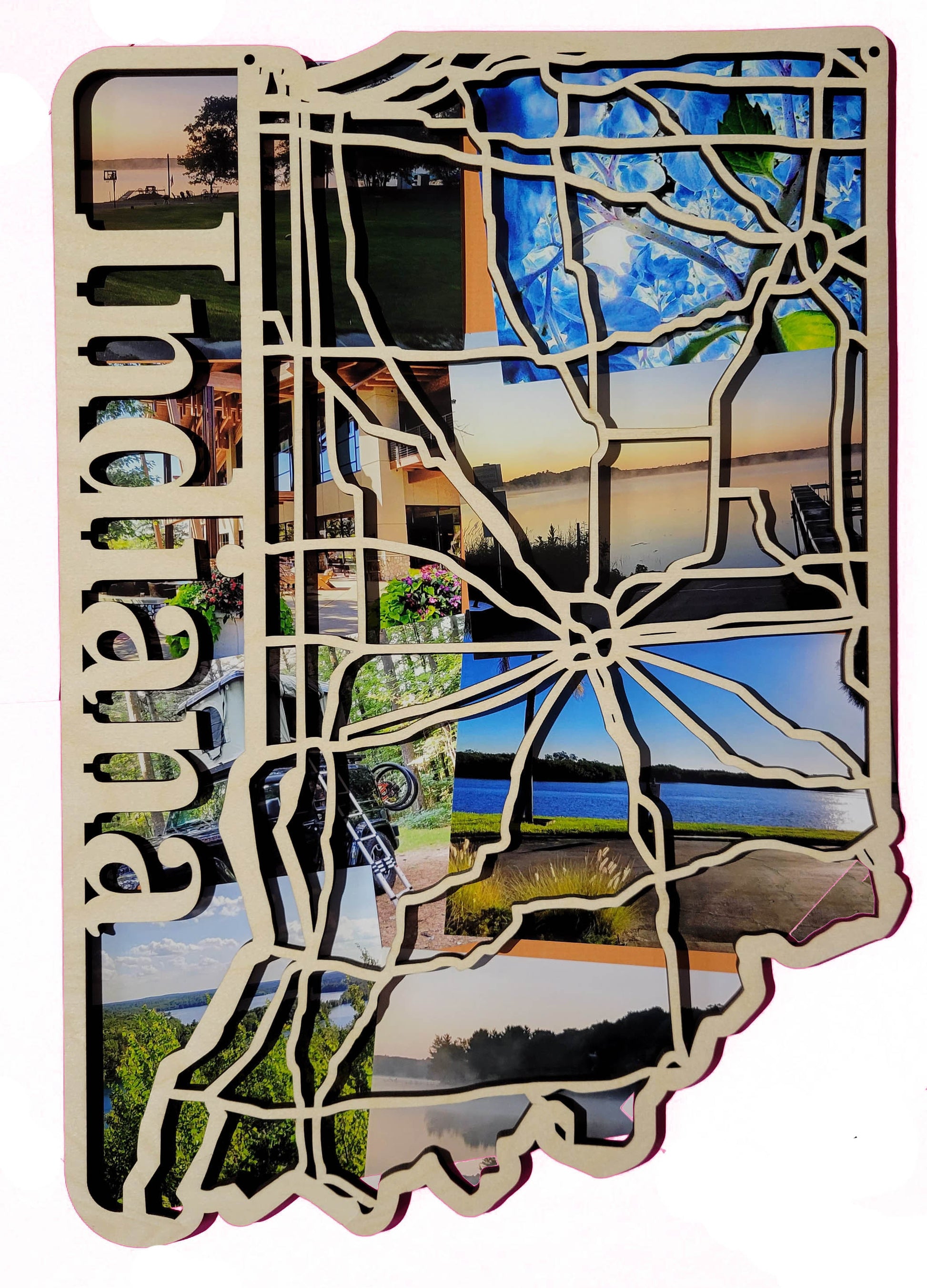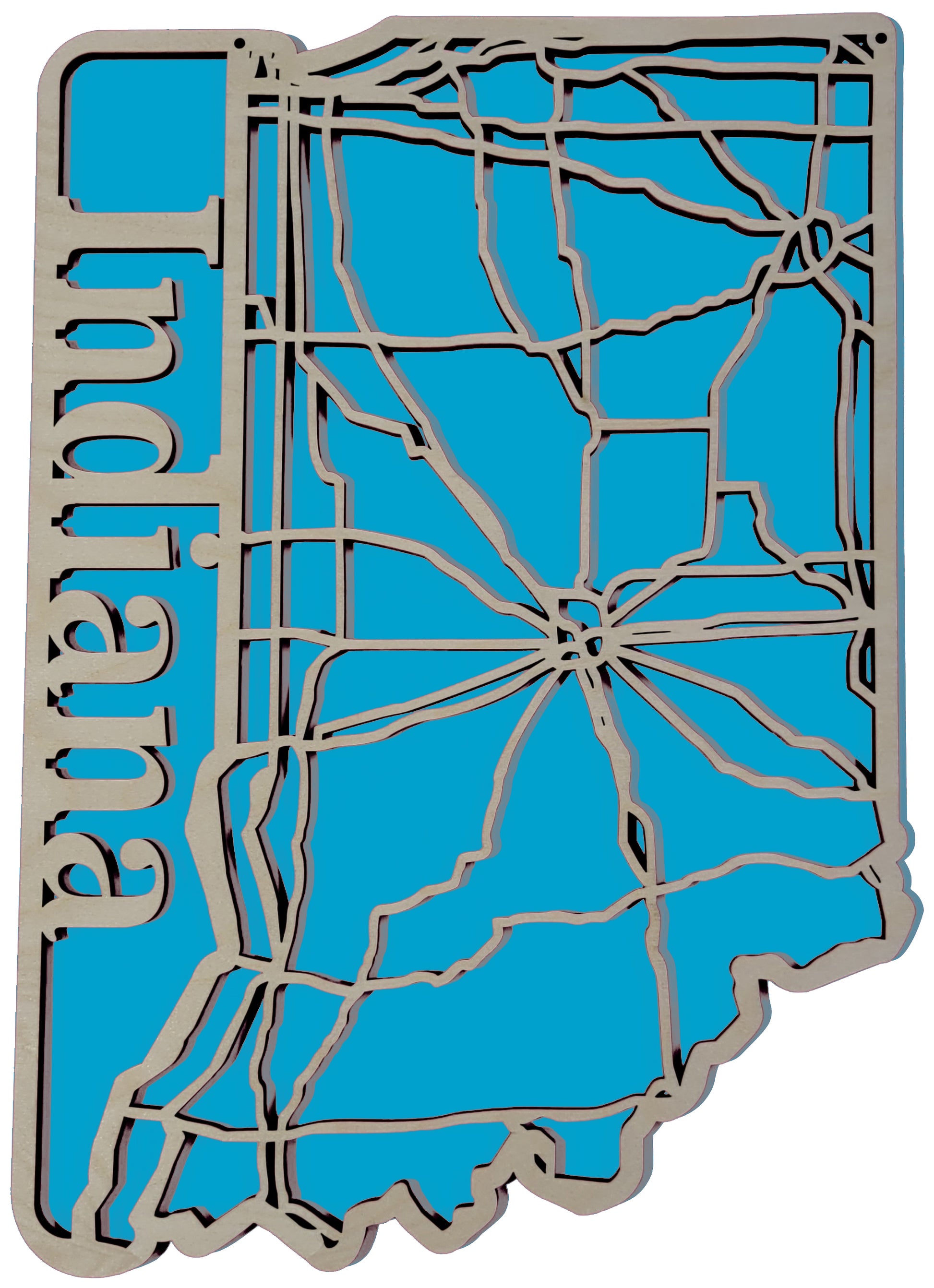 Show your home state some love with this unique Indiana State Road Map. Crafted from 1/4 inch wood, it highlights the main roads of Indiana in a stylish way.