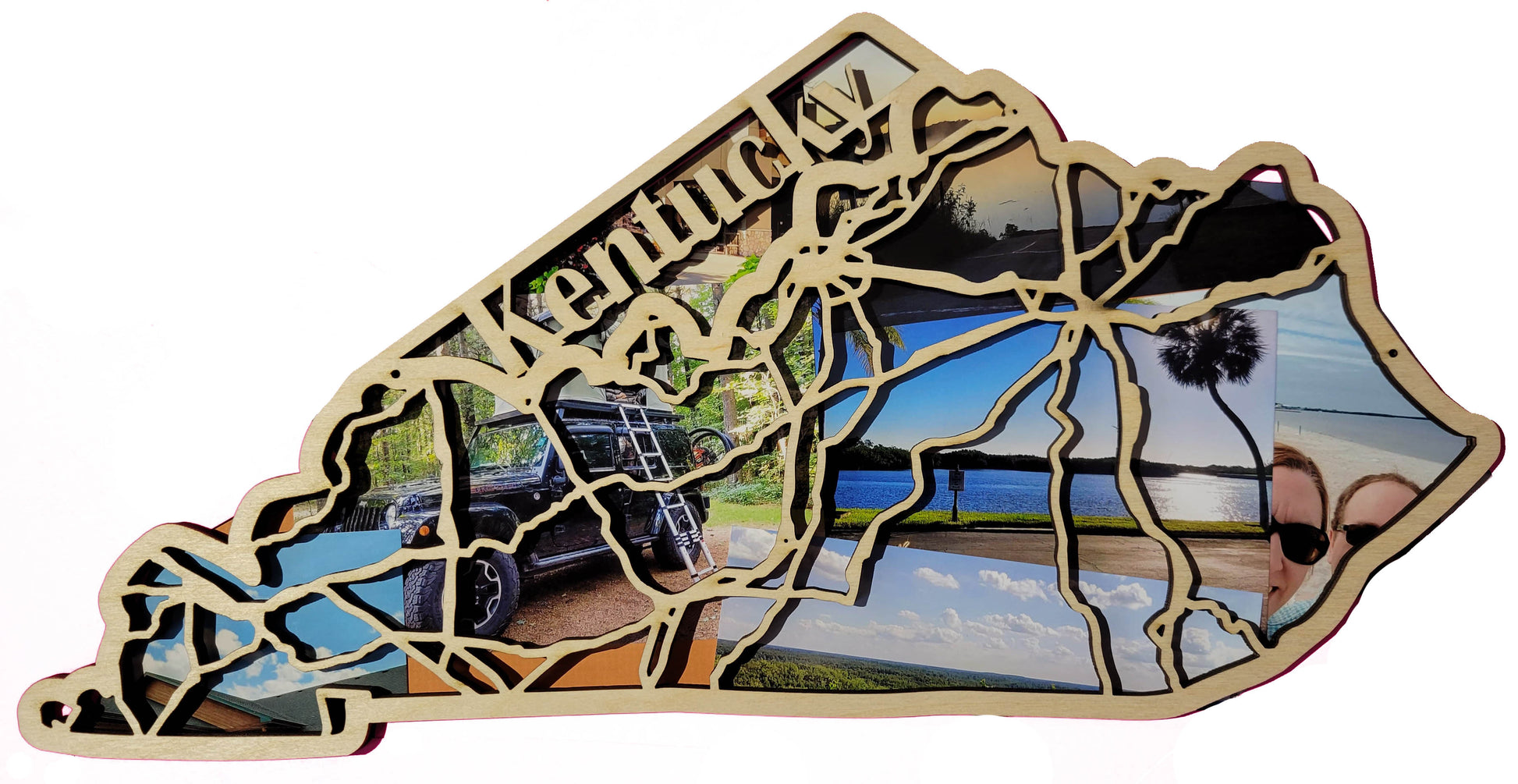 Bring a touch of style to your home with this unique Kentucky State Road Map. Crafted from 1/4 inch wood, this map highlights the main roads of Kentucky, making it a perfect décor piece.