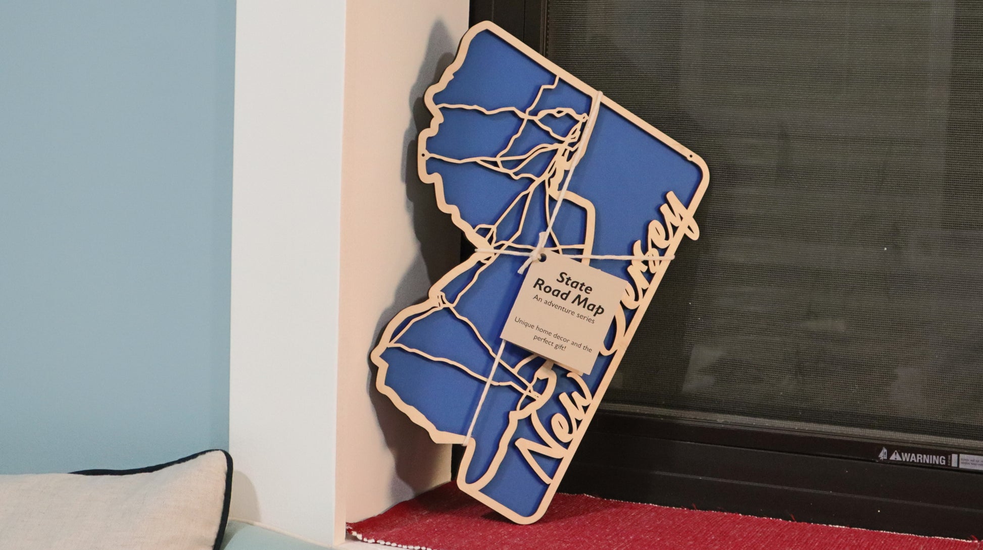Embrace your roots with a unique New Jersey State Road Map, crafted from 1/4 inch wood. This beautifully designed map highlights the main roads of New Jersey, adding a stylish touch to your home decor.