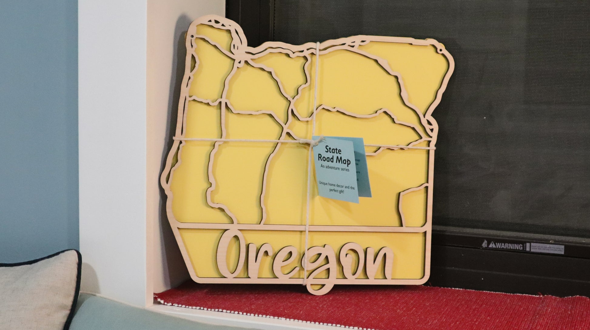 Bring the spirit of Oregon into your living space with our stunning state road map, meticulously crafted from 1/4 inch wood. The intricate design showcases the main roads, making it more than just a map; it’s a unique piece of art for your home.