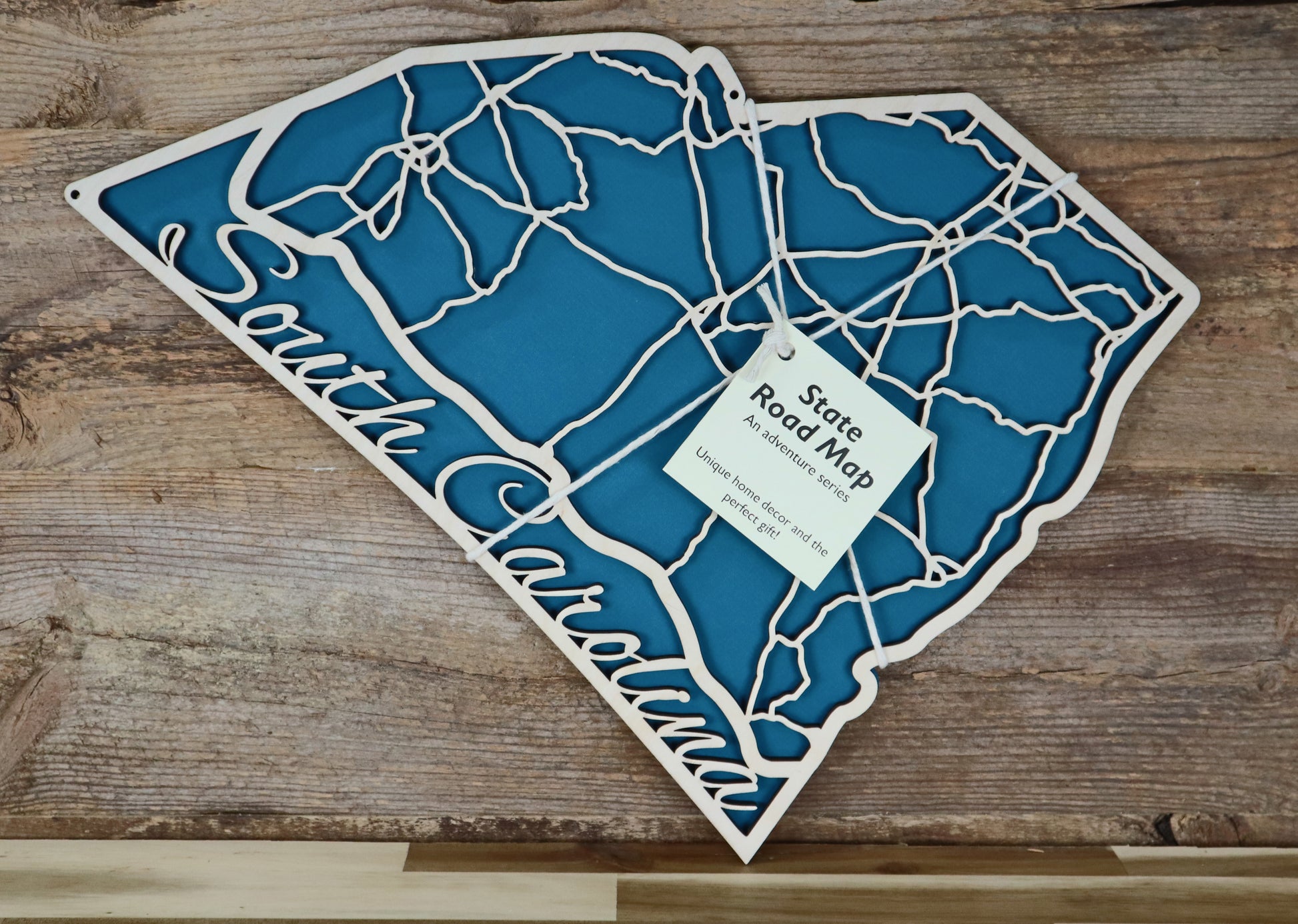 Show your home state some love with this unique South Carolina State Road Map, made from durable 1/4 inch wood. It's not just a map; it's a stylish addition to your home decor.
